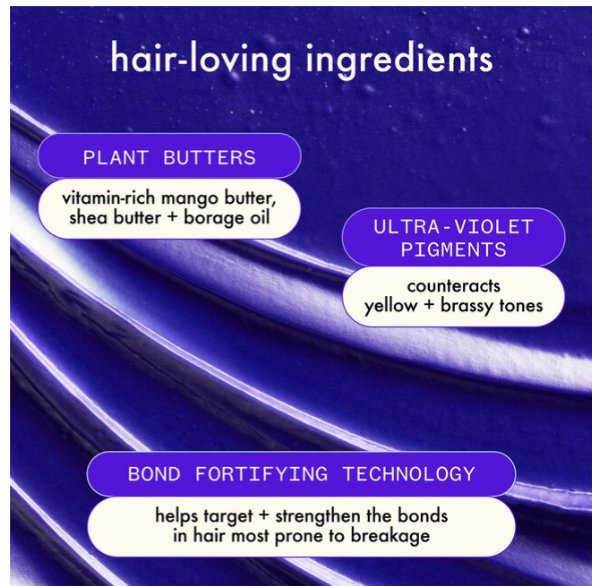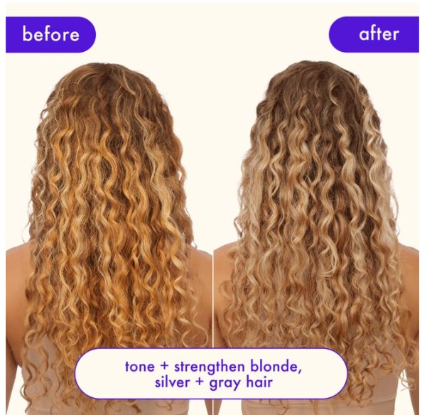 - Tones brassiness: counteract any yellow, unwanted brassy hues for an icy blonde, silver or gray. Lookin’ cool.