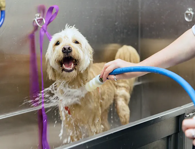 This package includes a bath and brush, nail trimming and grinding, ear cleaning, and a sanitary trim.