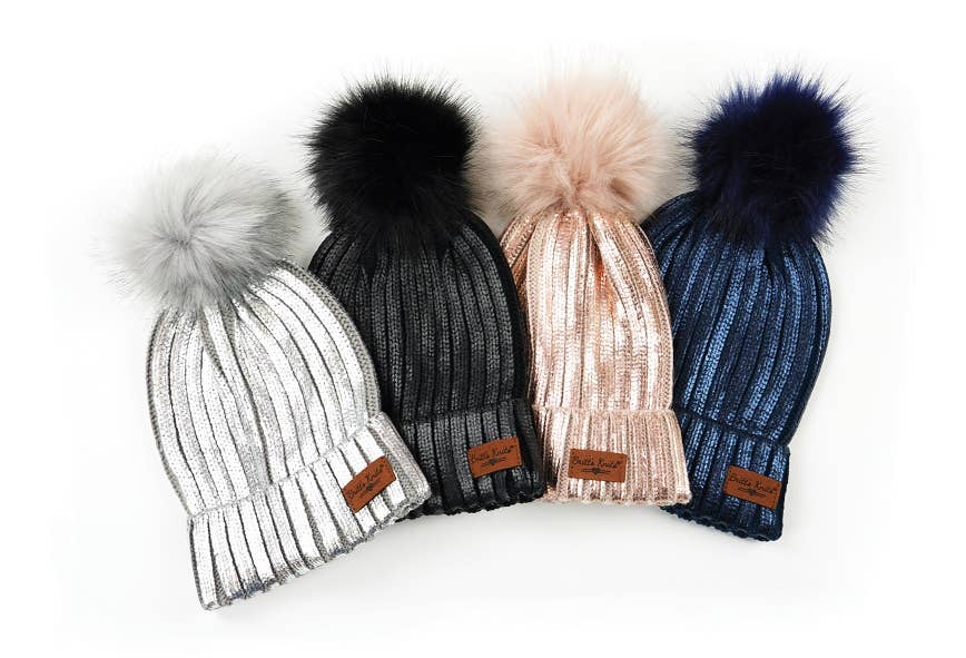 Get a style that shines with the Glacier Knit Pom Hat. Glazed with icy metallic printing, this ribbed knit hat features an ultra-plush pom and a cool, relaxed fit. Ribbing expands while wearing for a unique matte and metallic effect. -Ribbed knit with an icy metallic finish -Plush pom topper -One size fits most