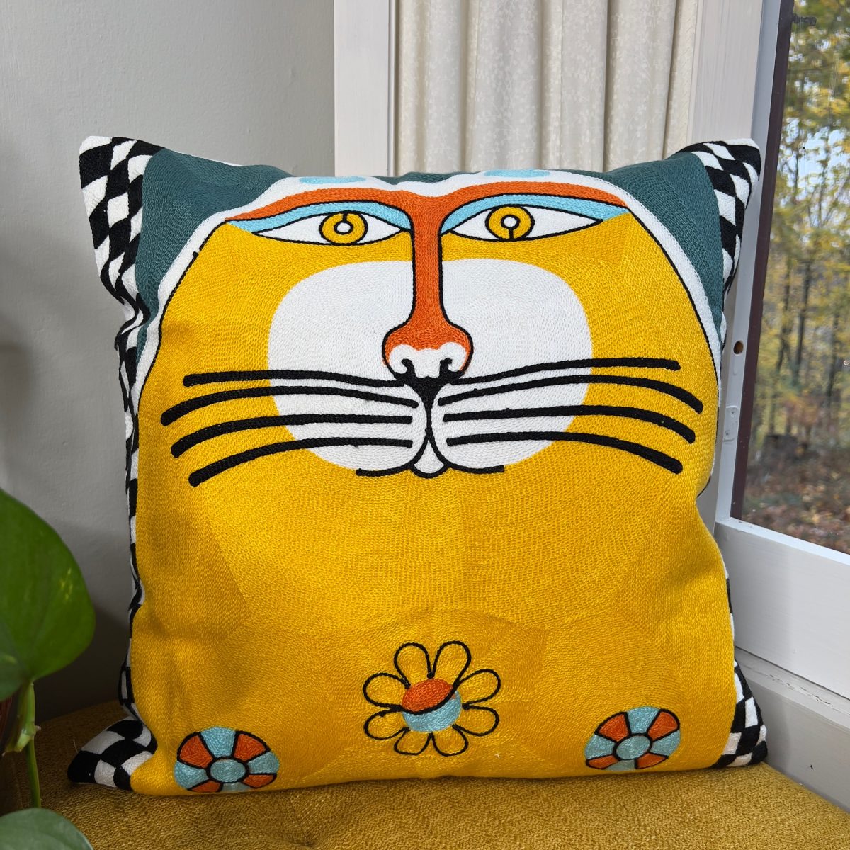 Perfect for cat lovers and eclectic décor, this eye-catching pillow adds a cheerful touch to any room!