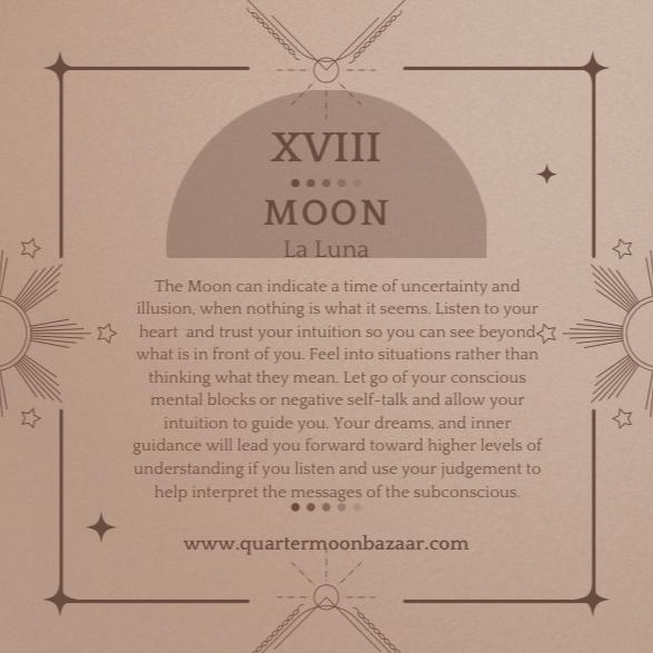 Moon (Luna): With the Moon in a love tarot reading, it’s likely that emotions are complicated at this time. The environment can be one full of misunderstandings, and not everything is as it appears. You may need to do some work to get to the bottom of things; be sure to not only ensure the intentions of others, but also understand your own emotions, desires and motivations. There may be old attitudes, beliefs or ideas that are clouding your judgement. Many things can be hiding in your unconscious affecting your ability to accept love. Are past relationships haunting you? Have you lost faith in love? Do you believe you are unworthy of love? All of these can have profound affects on how we approach relationships. Now is the time to examine them and reveal them as they truly are.