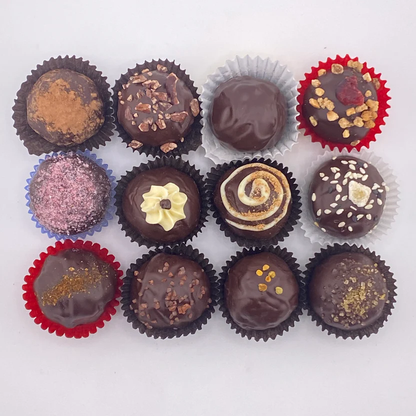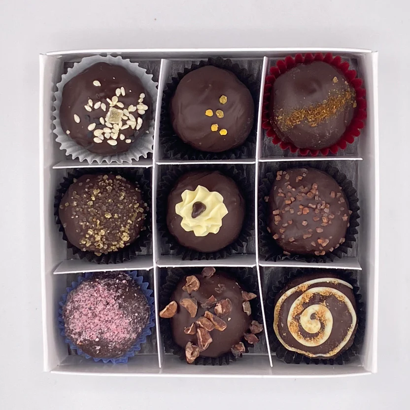- Orange & Cardamom Truffle* – 65% dark chocolate ganache with sweet orange and spicy cardamom