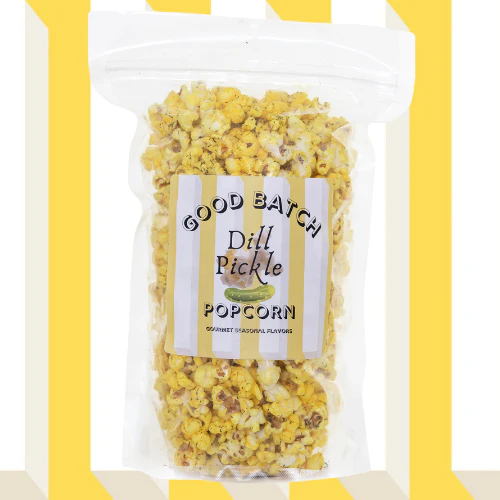 Inspired by the bunches of fresh dill at our local farmer’s market. Fresh and fragrant dill is simmered with browned butter to create a truly flavorful popcorn. Pucker up, this really tastes like a dill pickle!