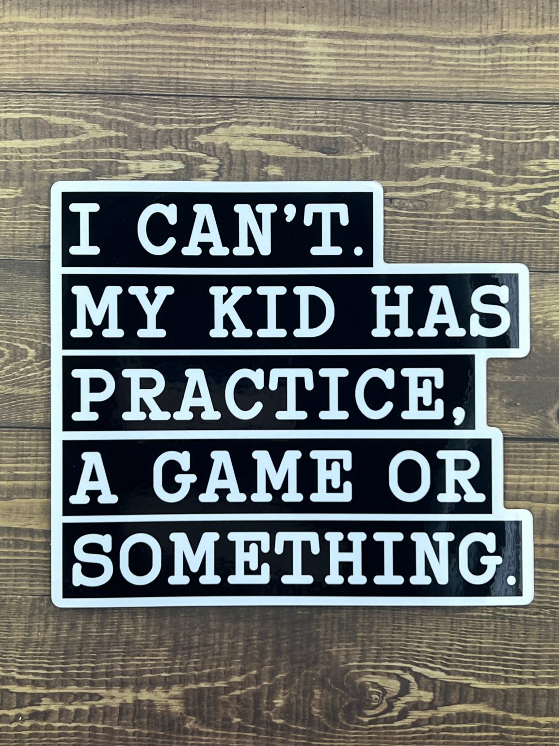 Introducing the ultimate declaration of dedication – the “I Can’t, My Kid Has Practice, a Game, or Something” Car Decal. Embrace the hustle and heart of parenting with this witty and relatable decal, designed for the parents who give their all to support their children’s endeavors.