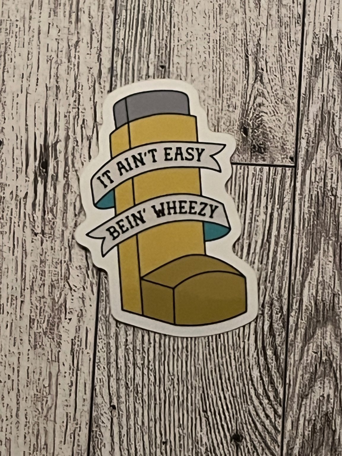 This isn’t just a sticker; it’s a badge of honor for those who know the struggle. It’s waterproof and dishwasher safe, so you can proudly display your wheezy wisdom wherever you go. So, take a deep breath, relax, and let this sticker be your new best friend.