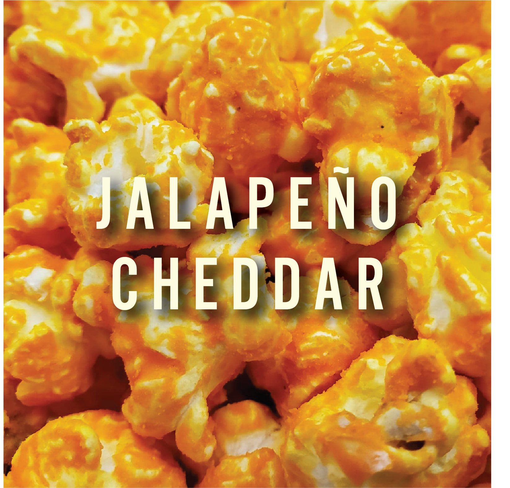 Jalapeño Cheddar Popcorn – a fiery fusion of bold spice and creamy cheddar goodness. Each perfectly popped kernel is generously coated in a tantalizing blend of sharp cheddar cheese and the zesty kick of jalapeño, creating a savory and spicy snacking experience that’s sure to thrill.
