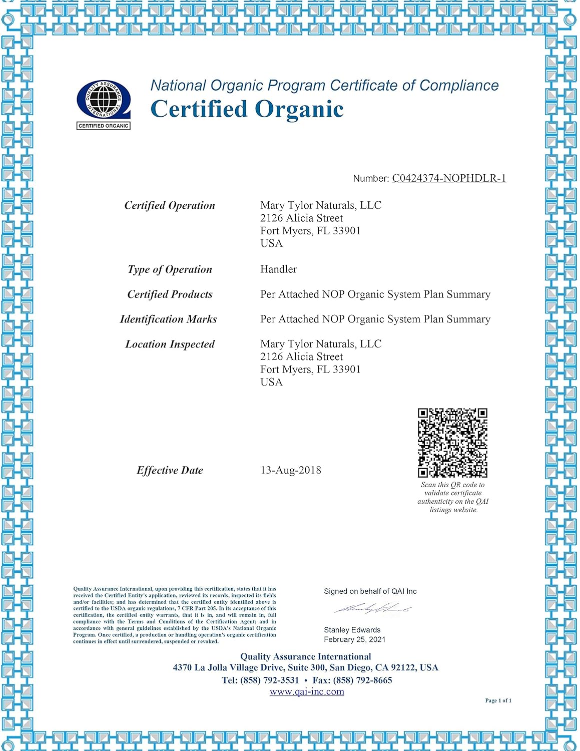 - Certified Organic