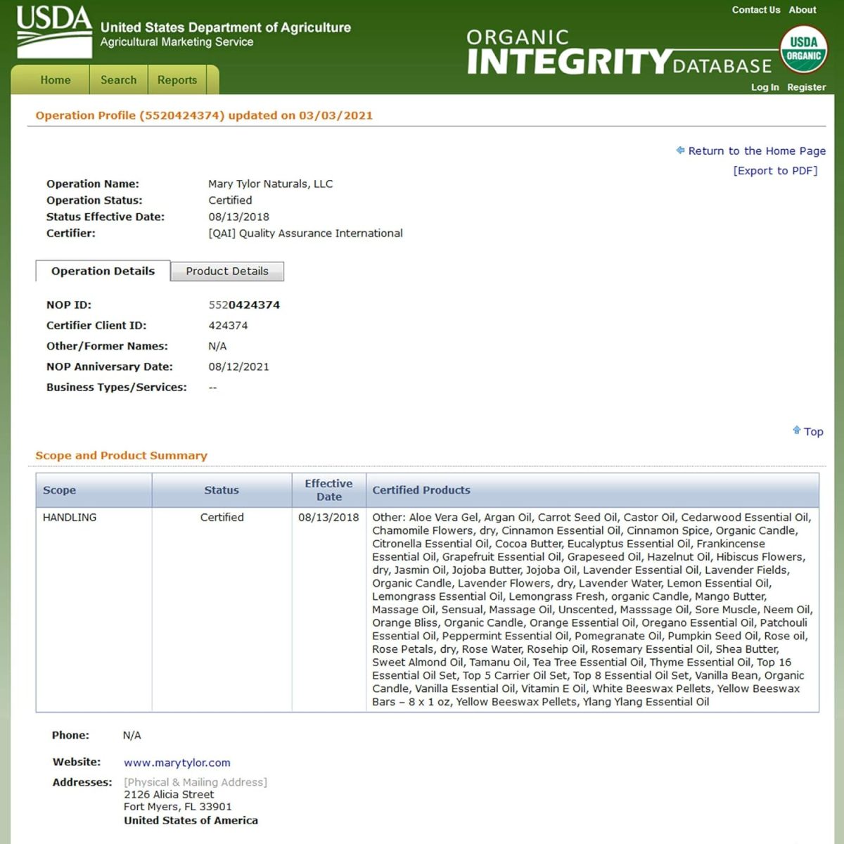 - USA MANUFACTURER: We Are The USA Manufacturer And Only Seller of the Mary Tylor Naturals Brand and We Stand Behind Each Product We Offe