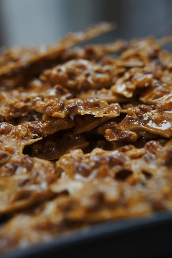 Our Pecan Brittle is a southern inspired favorite with a rich, praline-like flavor that keeps customers coming back for more. Made in small batches, this brittle combines buttery pecans with a perfectly caramelized crunch.