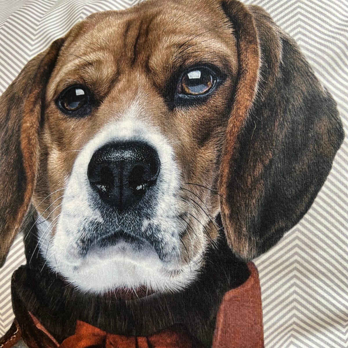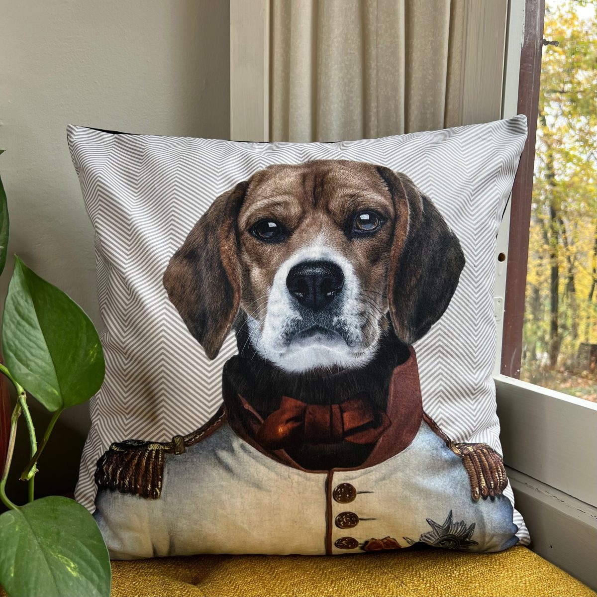 Add a touch of whimsy and elegance to your space with this unique 18×18 Beagle Portrait Pillow Cover. Crafted with meticulous attention to detail, this pillow cover features a distinguished beagle dressed in regal attire, bringing charm and character to any room. The high-quality fabric with a herringbone pattern background enhances its luxurious feel and durability, while the sophisticated design makes it a perfect fit for modern, eclectic, or vintage-inspired decor.