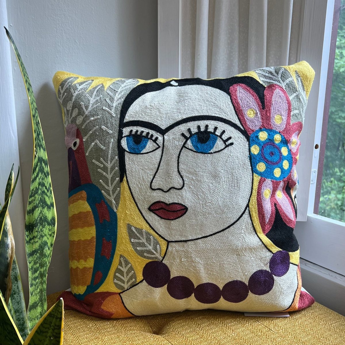 Set of three of our best selling Frida Kahlo embroidered pillow covers. Bring color and vibrancy into your home or office!