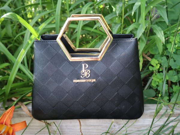 Bold Statement Gold, Metal, hexagon handles. Crossbody strap included. Versatile style. Business casual attire or day to day casual use. Style made easy