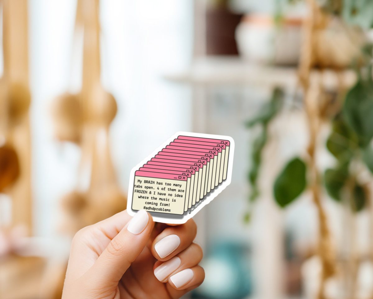 Ever feel like your brain has 47 tabs open… four are frozen… and mysterious music is playing from somewhere? Congrats, you’re the inspiration behind this sticker. 🙃