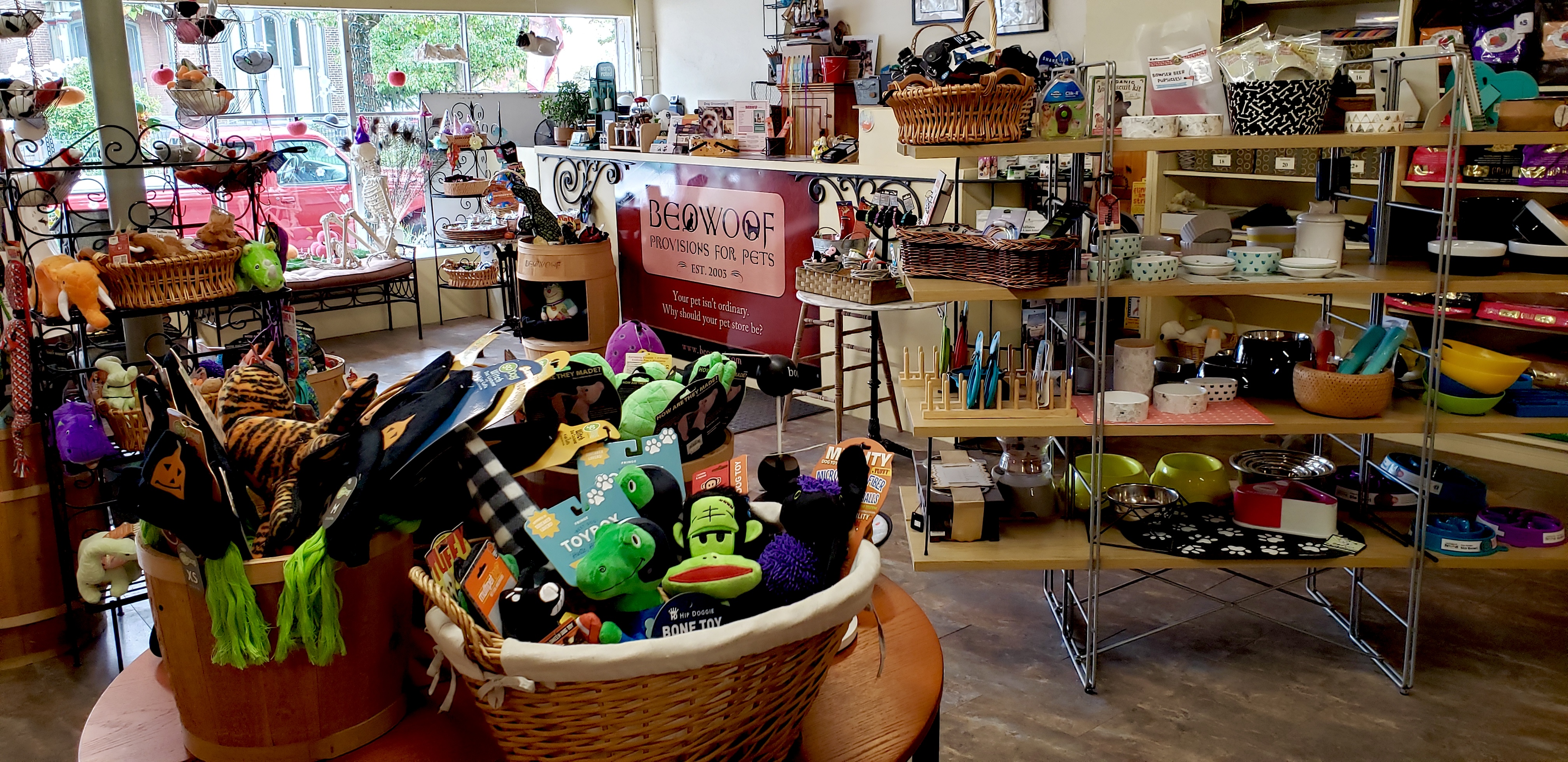 Beowoof Provisions for Pets is truly a “Mom & Pop” pet store (Laura & Karl, in our case)—we love people and their pets, and do everything in our power to provide our customers with both information regarding pet care and nutrition, and a wide selection of healthy dog food, cat food, and treats for their “fur-babies” as well. We also offer a wide variety of toys, beds, leashes, collars, harnesses, and pet apparel.
